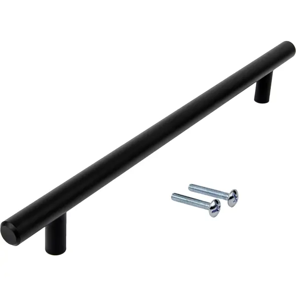 **Ручка-рейлинг** представляет собой простое и практичное изделие, выполненное из стали. Характеризуется лаконичным оформлением, что позволяет вписать его в большинство интерьеров, высокой прочностью и устойчивостью к механическому воздействию. Выполнена в виде цилиндрической перекладины, дополненной двумя фиксирующими ножками. Подходит для установки на фасады ящиков тумб, комодов и других предметов мебели. ### Особенности: - цвет черный матовый; - изделие можно установить как в горизонтальной, так и в вертикальной плоскости в зависимости от личных предпочтений и эргономики предметов мебели; - надежность, за счет чего ручка-рейлинг отлично подходит для массивного фасада; - крепление осуществляется с использованием саморезов; - габаритные размеры 32 х 12 х 252 мм, вес — 234 г; - межосевое расстояние — 192 мм.