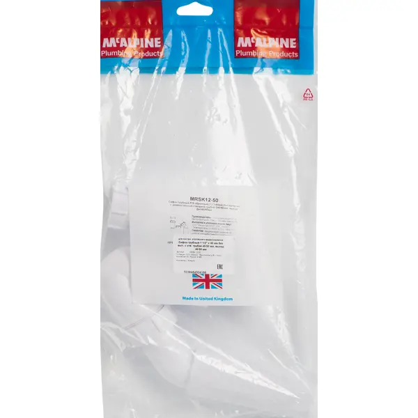 **Сифон для мойки трубный McAlpine** без выпуска оснащен отводной универсальной трубой. Его устанавливают с умывальниками либо раковинами на кухне или в ванной комнате квартир, детских садов, школ, предприятий общественного питания. Его предназначение состоит в отводе стоков холодной и горячей воды. Сифон P/S-образной формы изготовлен из полипропилена белого цвета. ### Особенности: - трубный вид; - белый цвет; - высота — 20 см; - диаметр слива — 40 мм; - диаметр подключения 1 1/2"; - вертикальное направление выпуска.