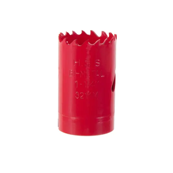 **Коронка для металла Bi-Metall Matrix** размером 32 мм предназначена для вырезания круглых отверстий правильной формы в металле, пластике, дереве, фанере или ДСП. Изготовлена из быстрорежущей стали HSS P6M5, твердость — 60-64 единицы по HRC (высокая). ### Достоинства оснастки - Универсальность применения: подходит для разных строительных материалов. - Высокая твердость быстрорежущей стали обеспечивает качественный рез материала. - Предусмотрено отверстие спиралевидной формы на боковой стенке коронки для эффективного удаления стружки. - Наклон зубьев инструмента увеличивает скорость обработки материала. - Коронка используется в качестве насадки как на стационарном, так и на мобильном сверлильном инструменте.