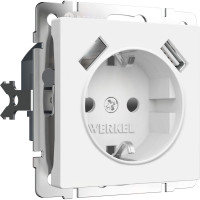 #1855305 Розетка WERKEL с заземлением, шторками и usbх2 (белый матовый) a062406