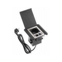 #10405582 Удлинитель врезной квадратный GTV FLIP, 1xSCHUKO, 2xUSB, 1xLAN, вилка, провод 1,5M, цвет черный AE-GM1SFLI-20