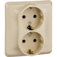 #1329425 Двухместная розетка Systeme Electric СП Glossa с заземлением, в сборе бежевая GSL000224