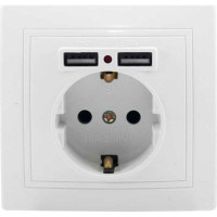#1809453 Розетка Jilion 1 гнездо с заземлением с USB, белый 9533166