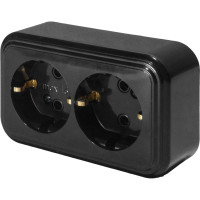 #1440824 2-местная розетка STEKKER без заземления, PST16-30-20 RA 16-237-Ч, пластик АВС, 16А, IP20, черный 39694