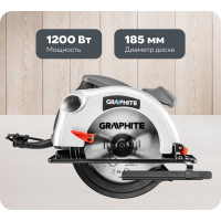 #1064947 Дисковая пила GRAPHITE 185 мм, 1200Вт, доп диск, кейс 58G488