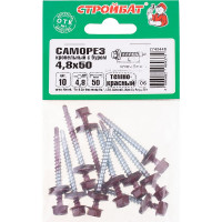 #10932392 Кровельные саморезы с буром Стройбат 4,8x50 темно красный 10 шт 352920