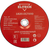 #1897327 Диск обдирочный по металлу (230х22.2 мм) Elitech 1820.017000 |