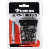 #1888455 Набор бит на блистере 16 предметов, магнитный адаптер 60 мм + 15 бит, 25 мм ЕРМАК 601-065
