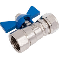 Шаровой кран Millennium латунный,никилерованный для воды 3/4" внутренняя/внутренняя резьба ручка-бабочка KVBFF3434