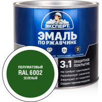 #1445158 Эмаль ЭКСПЕРТ по ржавчине 3 в 1 полуматовая, зеленый RAL 6002, 1.8 кг 28252