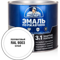 #1534798 Эмаль ЭКСПЕРТ по ржавчине 3 в 1 полуматовая, белый RAL 9003, 1.8 кг 28250