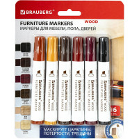 #1650659 Маркеры для ремонта мебели и изделий из дерева BRAUBERG WOOD 6 цветов 152203