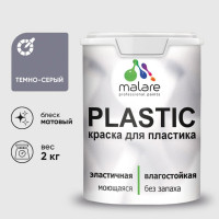 #10365918 Акриловая краска MALARE для пластика Plastic для ПВХ, для подоконников и откосов, без запаха, матовая, темно-серый 2 кг КПЛСТАТЕСМ0200