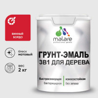 #10369221 Грунт-Эмаль MALARE 3 в 1 для деревянных поверхностей, акриловая, моющаяся, без запаха, матовая, багровый агат, 2 кг ГЭДЕРАБААМ0200