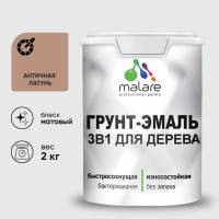 #10369227 Грунт-Эмаль MALARE 3 в 1 для деревянных поверхностей, акриловая, моющаяся, без запаха, матовая, античная латунь, 2 кг ГЭДЕРААНЛМ0200