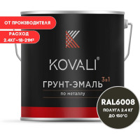 #10889496 Грунт-эмаль 3 в 1 KOVALI полуглянец Коричнево-зеленая RAL 6008 (2,4кг) kov3.1.5С6008
