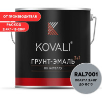 #10915376 Грунт-эмаль 3 в 1 KOVALI полуглянец Серебристо-серая RAL 7001 (2,4 кг) kov3.1.2А7001