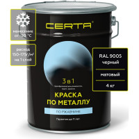 #1434759 Быстросохнущая краска по металлу Certa 3 в 1 (по ржавчине; матовое покрытие; гладкая; черный; 4 кг) KRGL0040