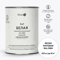 #1451036 Быстросохнущая грунт-эмаль по металлу Elcon 3 в 1 по ржавчине, матовая, белая, 0.8 кг 00-00462295