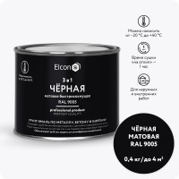 #1558915 Быстросохнущая грунт-эмаль по металлу Elcon (3 в 1 по ржавчине; матовая; черная; 0,4 кг) 00-00462648