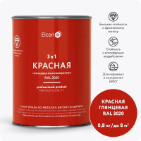 #10896849 Грунт-эмаль по ржавчине Elcon 3 в 1 глянцевая красная RAL 3020 0,8 кг 00-00750062