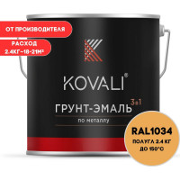 #10916989 Грунт-эмаль 3 в 1 KOVALI полуглянец Пастельно-жёлтая RAL 1034 (2,4кг) kov3.2.2.A.1034.2.4pg