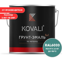 #10917045 Грунт-эмаль 3 в 1 KOVALI полуглянец Мятно-бирюзовая RAL 6033 (2,4кг) kov3.2.2.A.6033.2.4pg
