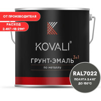 #10917282 Грунт-эмаль 3 в 1 KOVALI полуглянец Черно-серая RAL 7021 (2,4кг) kov3.2.5.C.7021.2.4pg