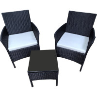 Комплект садовой мебели WORKY набор кофейный на 2 персоны (2 кресла + кофейный столик), искусственный ротанг, с черными подушками ARD258137