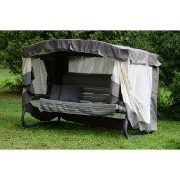 #10946952 Садовые качели OLSA 4-х местные Александрия каркас коричневый, бежевый, серый рисунок полоска 2 упаковки с1497