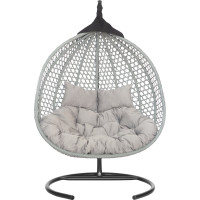 #10671924 Подвесное двухместное кресло-кокон Лаура ФИДЖИ серый + каркас, подушка бежевая FID 502