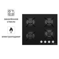 Газовая Варочная Панель Maunfeld Eghg.64.1cb/g 59 См 4 Конфорки Цвет Черный