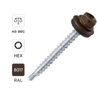 Саморезы кровельные по дереву DILWIS оцинкованные с буром RAL8017 4.8x64 мм на вес