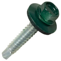 Саморезы кровельные по дереву DILWIS сс пресс-шайбой о сверлом RAL 6005 4.8x29 мм 100 шт.
