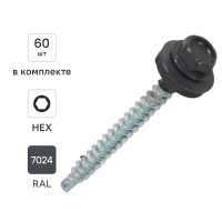 Саморезы кровельные по дереву DILWIS с пресс-шайбой со сверлом RAL 7024 4.8x51 мм 60 шт.