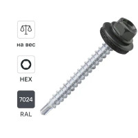 Саморезы кровельные по дереву DILWIS с пресс-шайбой со сверлом RAL 7024 4.8x29 мм 100 шт.