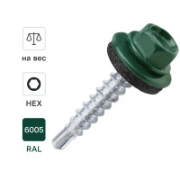 Саморезы кровельные по дереву DILWIS оцинкованные с буром RAL6005 4.8X35 мм на вес