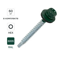 Саморезы кровельные по дереву DILWIS с пресс-шайбой со сверлом RAL 6005 4.8x51 мм 60 шт.