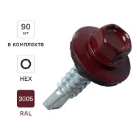Саморезы кровельные по металлу DILWIS с пресс-шайбой со сверлом RAL 3005 5.5x25 мм 90 шт.