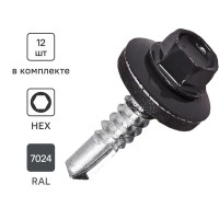 Саморезы кровельные по металлу DILWIS с буром 5.5x25 мм RAL 7024 12 шт.